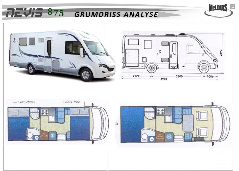Karavan - MCLOUIS - Nevis 80 GCelointegrovaný Fiat 2.3 150 PS Garáží, pro 4 osoby, 4 lůžka, do 3,5 tuny, s garáží Ceník podrobně =>>