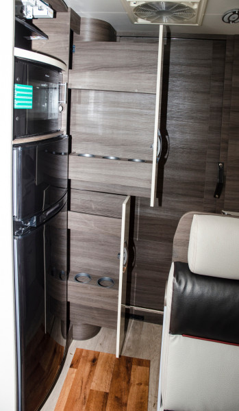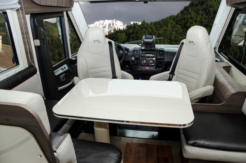 - Otočné sedadla v kabině, ortopedické postelové rošty na zadní posteli, 4 plnohodnotná lůžka, vyklápěcí okna, klimatizace, televize, satelit, luxusní povrchy zařízení karavanu a podlahy